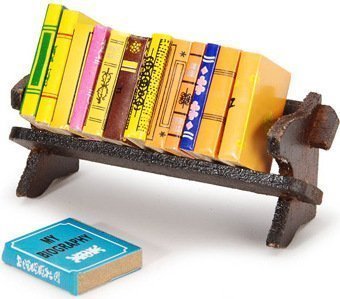 DARICE TIMELESS MINISTM MINIATURE BOOKS WITH A RACK. 3 INCHES. 1 SET PER PACKAGE. THESE TRADITIONAL BOOKS ARE PERFECT FOR DECORATING SCHOOLROOMS AND OFFICES IN DOLL HOUSES AND SCENES!