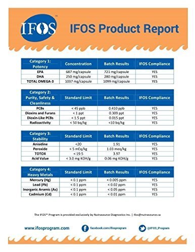Triple Strength Omega-3 IFOS® 5-Star Certified fish oil - Just one softgel per day delivers 1,037 mg of pure Omega-3s in highly absorbable Triglyceride form with: