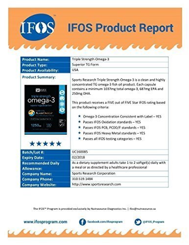 A Superior Fish Oil: Most other brands provide concentrated fish oil from mixed sources (anchovies, mackerel, sardines) and in ethyl ester form. Sports Research Omega-3 Fish oil is from only Wild Alaska Pollock in superior triglyceride form and containing the highest levels of EPA and DHA per fish softgel.