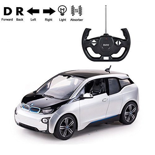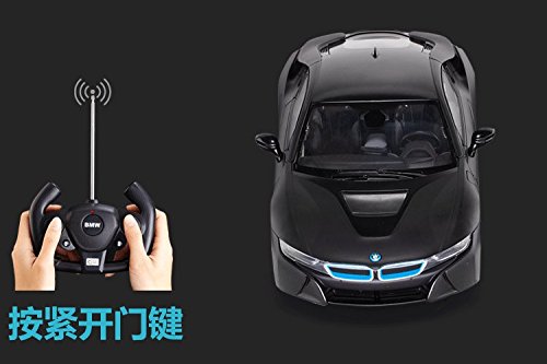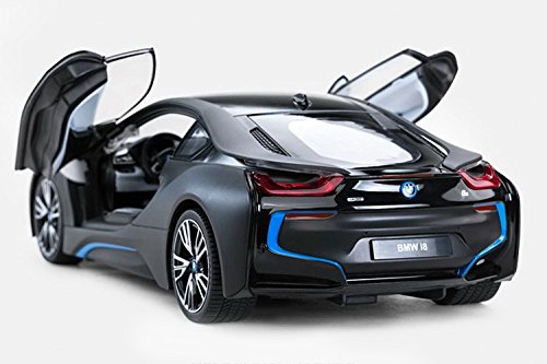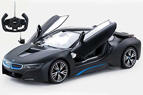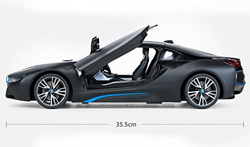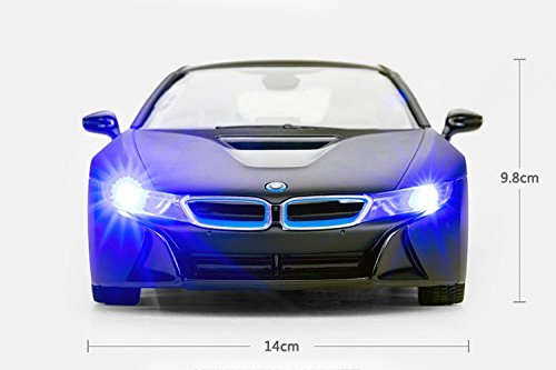 1/14 Radio Control Officially Licensed BMW i8 RC Car - Officially Licensed by BMW - Extremely Detailed and Nicely Finished, Does Its BMW Licensing Right - 1:14 Scale Length: 12.5" Height: 3.5" Width: 6" - Requires 5 AA Batteries (Not Including) RC requires 9V Battery (Not Including) Package Include: - Instruction manual, - One Car, One transmitter, Instruction manual, - One transmitterFeature