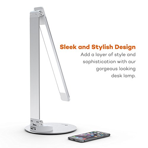 TaoTronics LED Desk Lamp with USB Charging Port, Eye- care Dimmable Lamp, Metal, Glare-Free, 5 Color Temperatures with 5 Brightness Levels, Touch Control, Memory Function