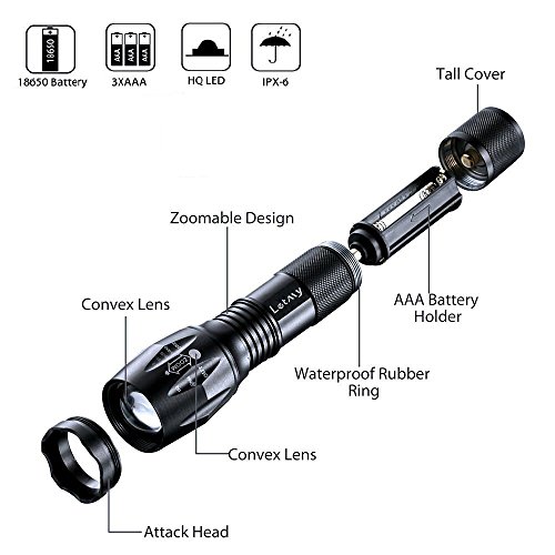 -- 1x 18650 or 3x AAA battery(battery not included) powered tactical flashlight for hiking, camping, hunting, fishing, targeted searches and general household use. 2 Years Warranty, Risk Free Purchasing!【Get 10% off by entering promotion code "GM7SSN8Z" for an lantern flashlight! Lantern Asin:B06XR8PM3T Link to order:https://www.amazon.com/dp/B06XR8PM3T】