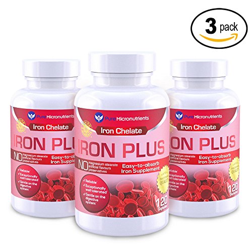 Pure Micronutrients' Iron Plus is a small Easy-to-Swallow gentle iron chelate supplement that provides over 100% of your required daily intake in a convenient 4-month supply per bottle.Iron Plus is a Practitioner Approved ferrous chelate complex. It contains 25mg per serve of the superior for of iron, Iron Bisglycinate. This clinically proven Highly Absorbable form of iron, is attached to the amino acid glycine. This enables it to break down in the small intestine, enhances bioavailability and reduces the incidence of stomach upsets and diarrhoea.†