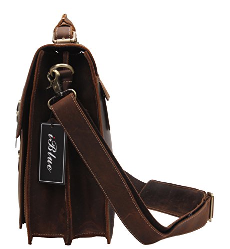 -. Title : Iblue Leather Messenger Bag Mens Vintage Business Laptop Briefcases Dark Brown 7164r