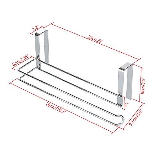 1、DIMENSION: For kitchen tissue paper roll with max, this kitchen paper hanger fit 11.2 inch paper towel rolls or the regular size roll paper and perfect for the cabinet with the thickness of less than 1.2 inch, size: 10.2"L x 2.7"W x 3.5"H.