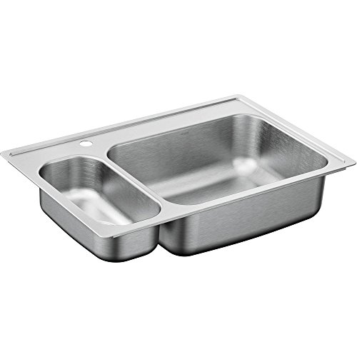 Moen G202861 2000 Series Stainless Steel 20 Gauge Double Bowl Drop in Sink, 33" x 22"