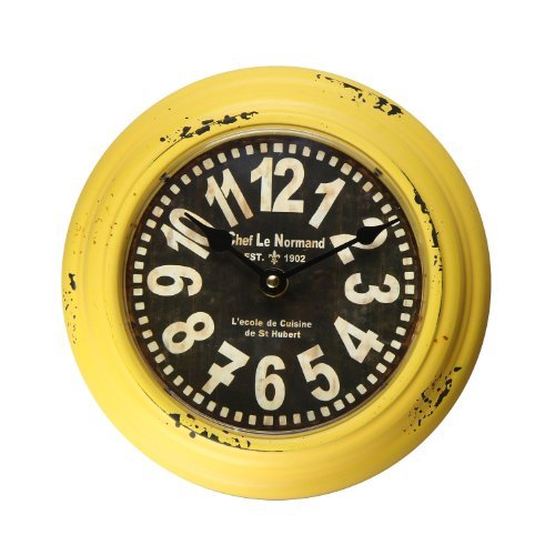 Adeco Yellow Iron Retro Vintage-Inspired Circular Wall Hanging Clock