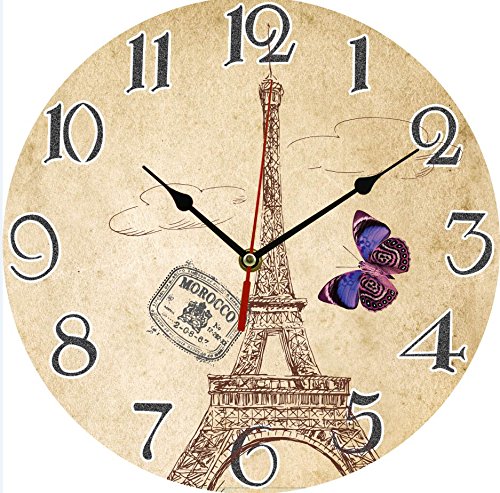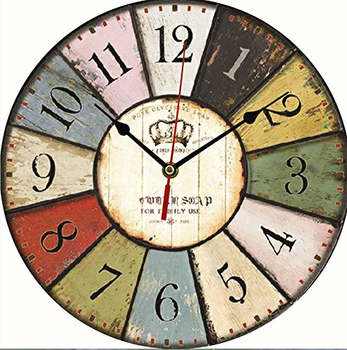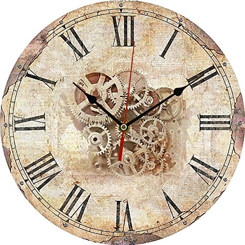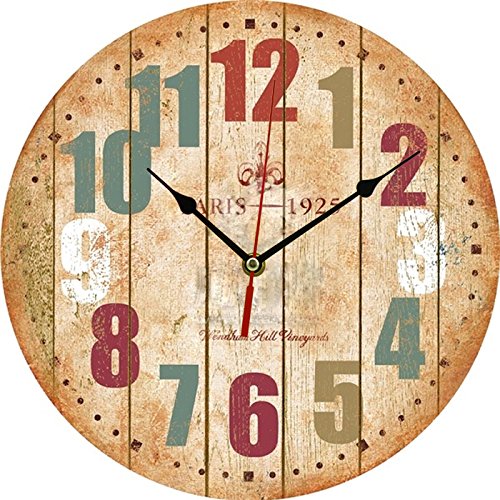 ChezMax 12" Vintage European Creative Frameless Wooden Electronic Wall Clock of French Country Tuscan Style DIY Assembling Clock