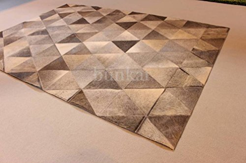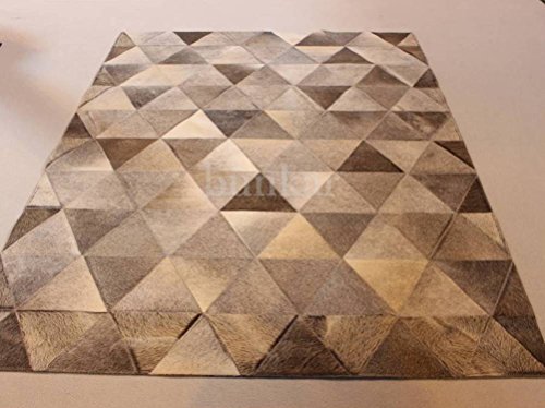 Studio : Bunkar Publisher : Bunkar Product Description This rug is similar to Hourglass rug from our patchwork collection and has large pyramid patches of grey hide, looks equally well in modern as well as traditional spaces. Another simple design, yet an elegant and sober look. This beautiful and stylish decor piece in your sweet home is a must! This rug is made from natural tanned cow/ox skin gives it the pure and natural look. The rug comes with soft and versatile acrylic felt backing that protects the leather from underneath floor moisture, general wear tear and also provides anti-slip properties. Please Note: Cowhide patches, being a natural product, might be slightly different from the pictures as the hides are taken from different cows at different times. We assure the best quality products and offer some standard sizes but we also customize the rug at your requirements. 0