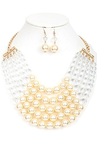 WOMEN'S FASHIONABLE MULTI COLOR BLOCK PEARL NECKLACE AND EARRINGS SET