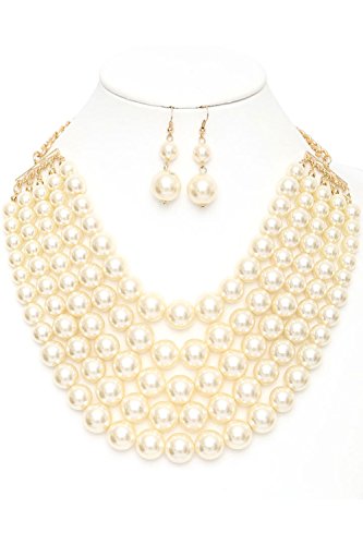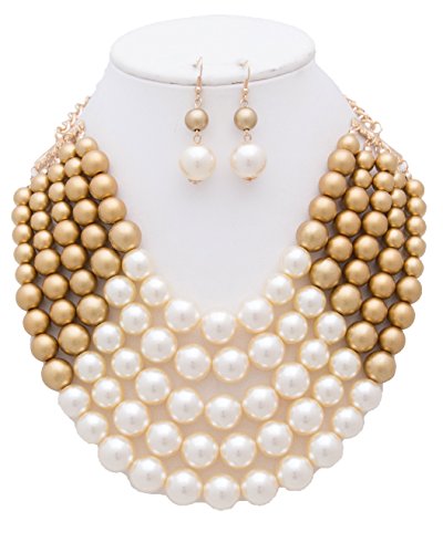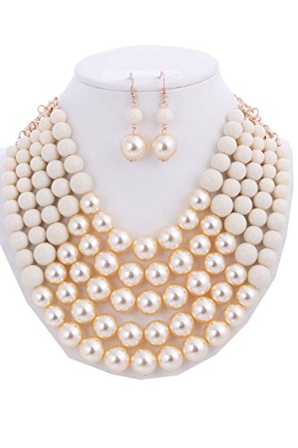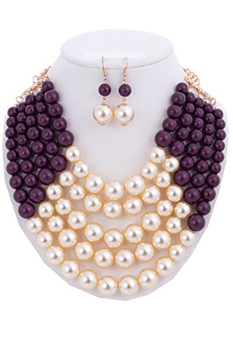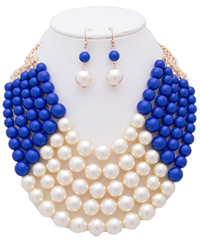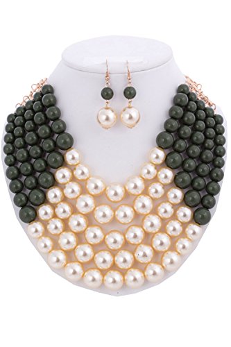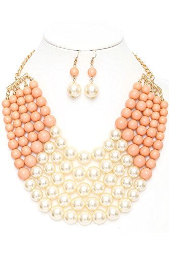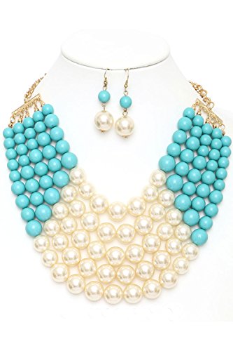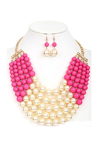 WOMEN'S FASHIONABLE MULTI COLOR BLOCK PEARL NECKLACE AND EARRINGS SET, The necklace is UNIQUE but it is totally adjustable to any length using the toggle clasp, Beautiful chain link necklace for special occasion!, 2"extension with Lobster Clasps, Designed in USA.Feature