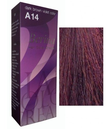 -. Feature : BERINA Permanent Color Cream Dark Brown Violet Purple A14 Permanent Hair Color Dye.