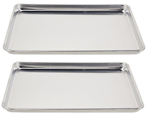 [Product Information]- COMMERCIAL QUALITY: Made of durable 18 gauge aluminum, these professional-weight baking sheet pan features a rod reinforced beaded rim and is heavier in gauge than that of standard home bakeware