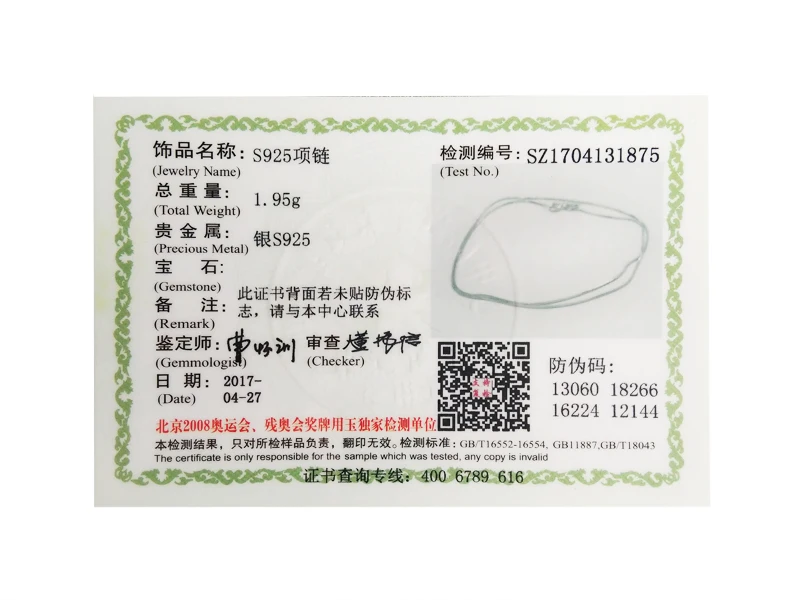 Certificate Number:SZ1704131875