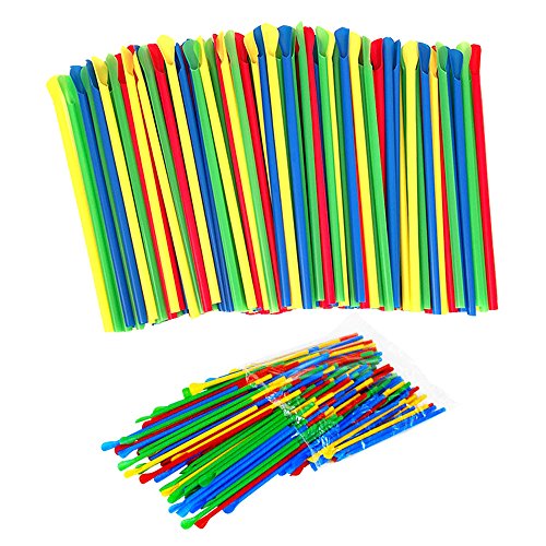 Plastic Neon Sno-Cone Straws with Spoons, Assorted Colors, Pack of 100