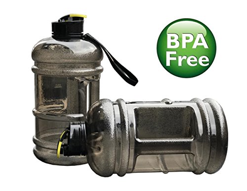 ?2-2.2L LARGE CAPACITY: Obviously the huge capacity! 2.2 liters fit inside the bottle. This corresponds to daily water intake. Transparent outlook,easy to check how much water you need to hold and how much water you have got. Perfect for pre or after workout water needs. SAFE & ECO - Made from the safest & durable BPA Free plastic.