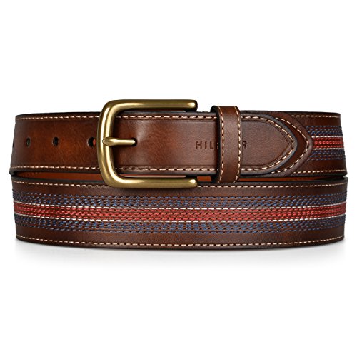 Tommy Hilfiger Men's Casual Belt with Center Stripe Stitch Detail