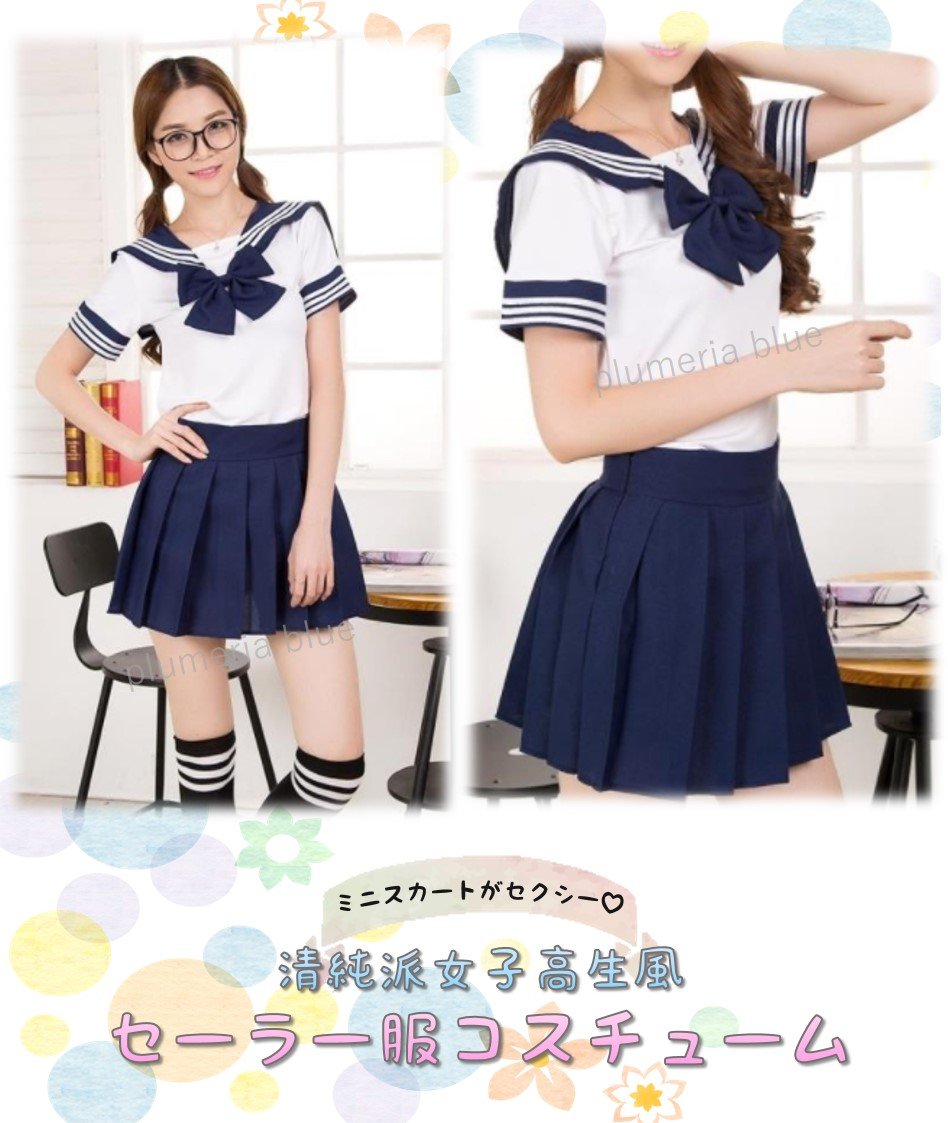 【19blue】 Sailor uniform Uniform Costume short sleeve mini skirt