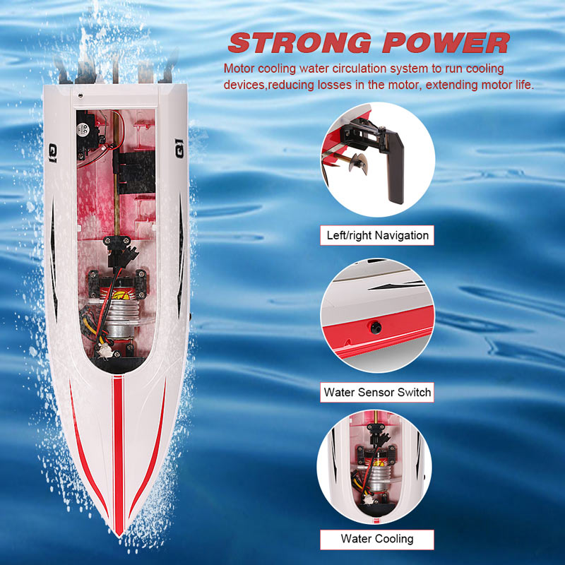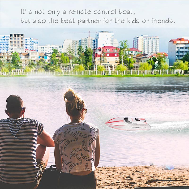 This RC boat has professional large torsion propeller and powerful high speed motor so that it can be easy to run. Besides, it also uses the advanced 2.4G technology of frequency connection for further remote distance. And it can 180 degree reversion brings you more cool experience. The boat is blazing fast, the speed about 25km/h. You will be surprised at how fast it is for being a relatively small and inexpensive boat.