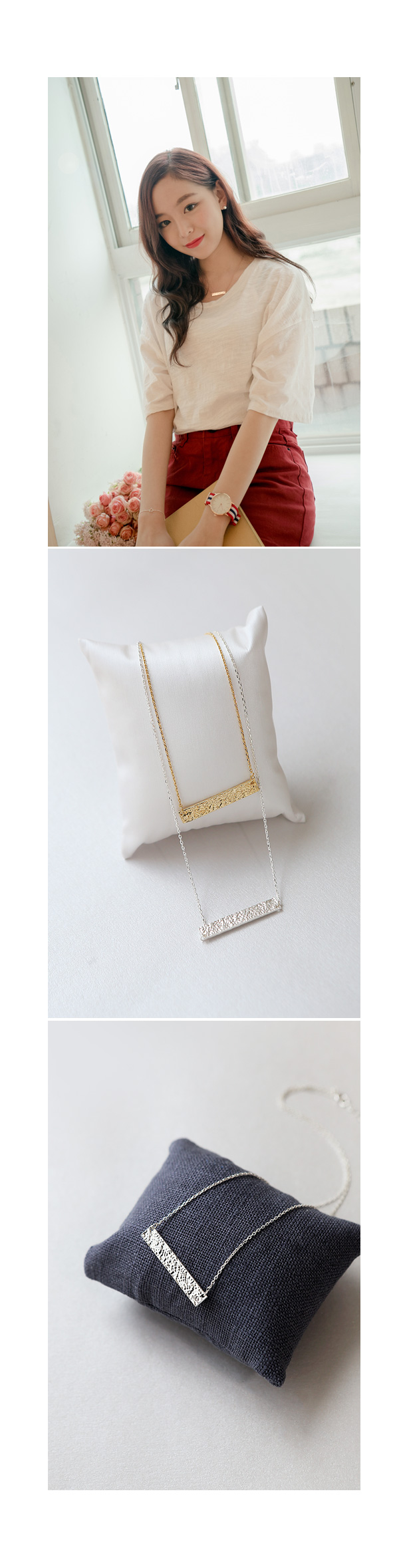 심플해서 어떤스타일이에도 시크하고 깔끔한 포인트로 좋은 목걸이입니다.
