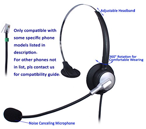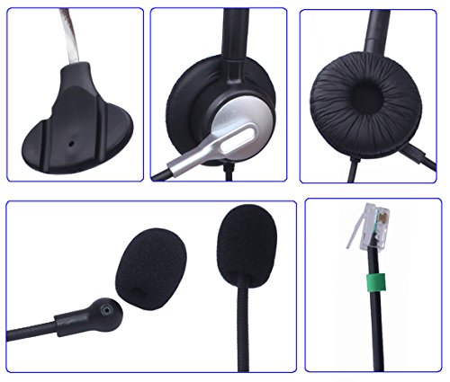 Wantek Wired Call Center Telephone Headset Headphone with Mic for NEC Aspire DT300 DSX Polycom 335 400 Avaya 1416 Aastra 6757i Mitel 5330 ShoreTel IP230 IP Phones(H110S01A)