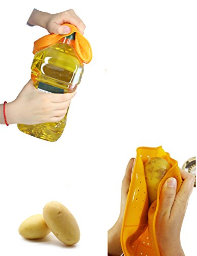 One kitchen tool for all! Use it as rice and vegetable washing bowl, strainer, potato and garlic peeler, lemon juicer, cap opener and microwave cover