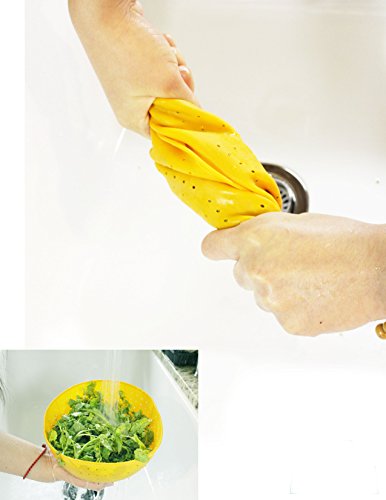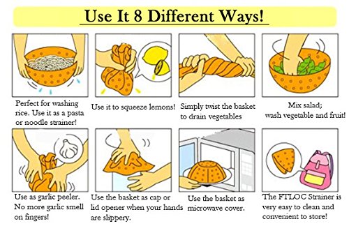 Use the FTLOC Strainer as rice and vegetable washing bowl, strainer, potato and garlic peeler, lemon juicer, cap opener and microwave cover…Check out the amazing features of this silicone strainer in the product pictures