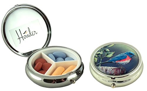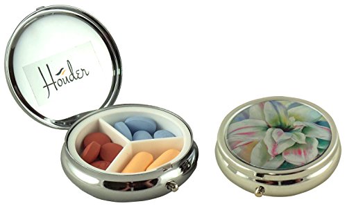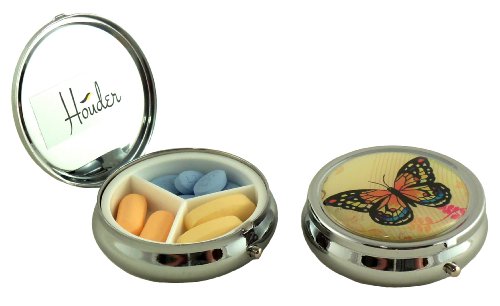 -. Binding : Kitchen -. Brand : Houder -. Color : Silver -. Feature : Decorative pill box by Houder. Carry your pills in style. / Perfect pill case for the purse or pocket. Measures 2"L x 2"W x .60"H / Internal divider keeps your pills organized. / Comes in easy to wrap gift box. Gift wrap options also available at checkout. / Unique gift for men or women. -. Label : Houder -. Manufacturer : Houder -. PackageQuantity : 1 -. ProductGroup : Home -. ProductTypeName : HOME -. Publisher : Houder -. Studio : Houder -. Title : Designer Pill Box by Houder - Decorative Pill Case with Gift Box - Carry Your Meds in Style