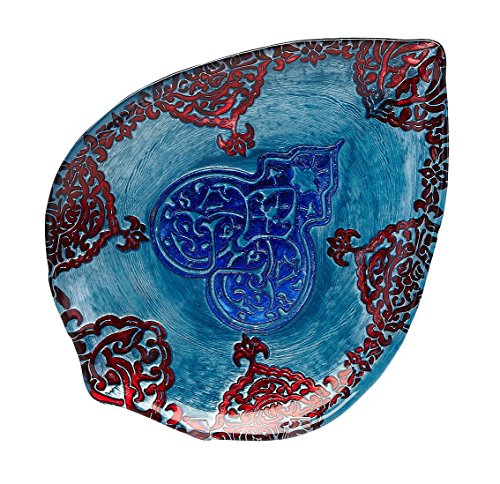 Red Pomegranate Casa Blanca Teardrop Plate Blue Lapis with Red 12-Inch