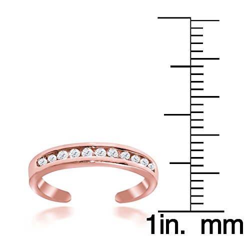 •The rose gold tone over sterling silver toe ring has an open back for a full adjustable fit and features a thin band of sparkling cubic zirconia stones.