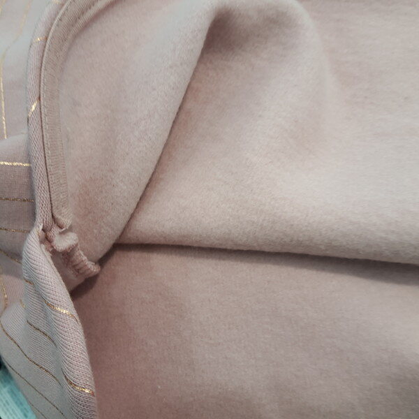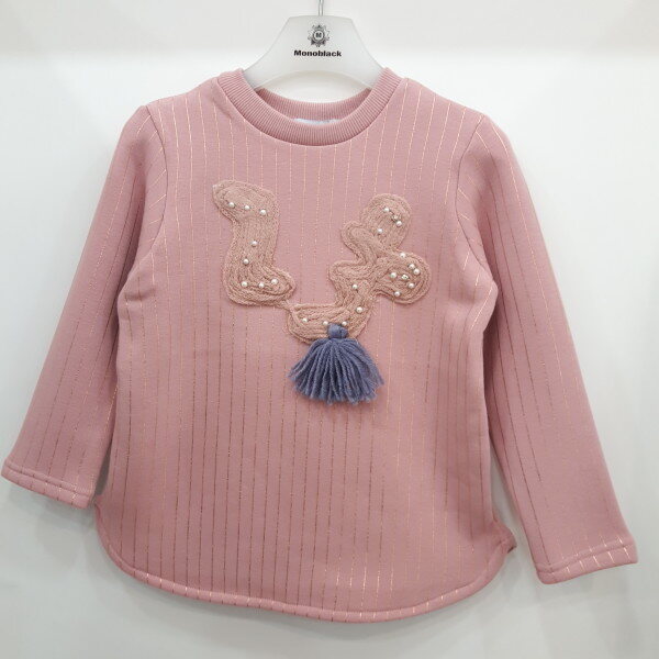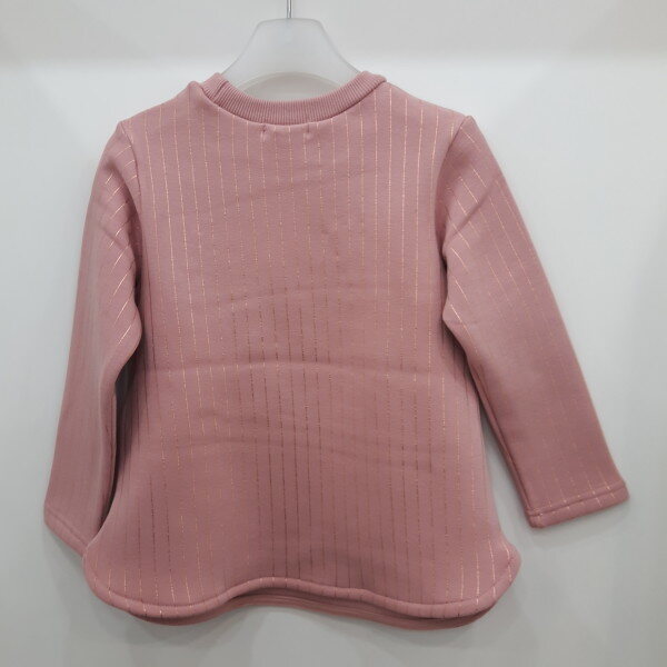 핑크색 라운드티 로서 가슴에 진주장식이 있습니다 여성스러운 티셔츠입니다 기모 안감으로 보온성을 좋게 하였습니다