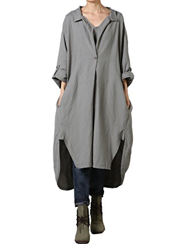 Loose fit and plus size style, pull-up sleeve, hi-low hem, with side pockets, V-neckline, little button on front to make this dress more unique.