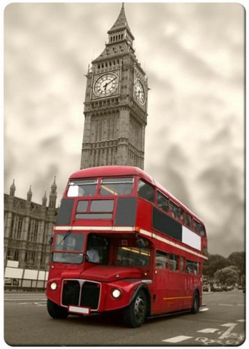 -. Title : Big Ben and red bus in London fridge magnet