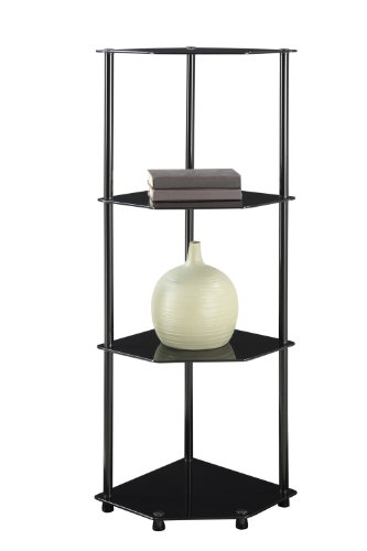 Contemporary styling is the essence of Convenience Concepts Inc., midnight collection . The clean, sleek lines define the four tier corner shelf. Stainless steel clad poles won't rust. Easy, no tools required assembly sets up in minutes. Will provide years of enjoyment. Four black tempered glass shelves.Feature