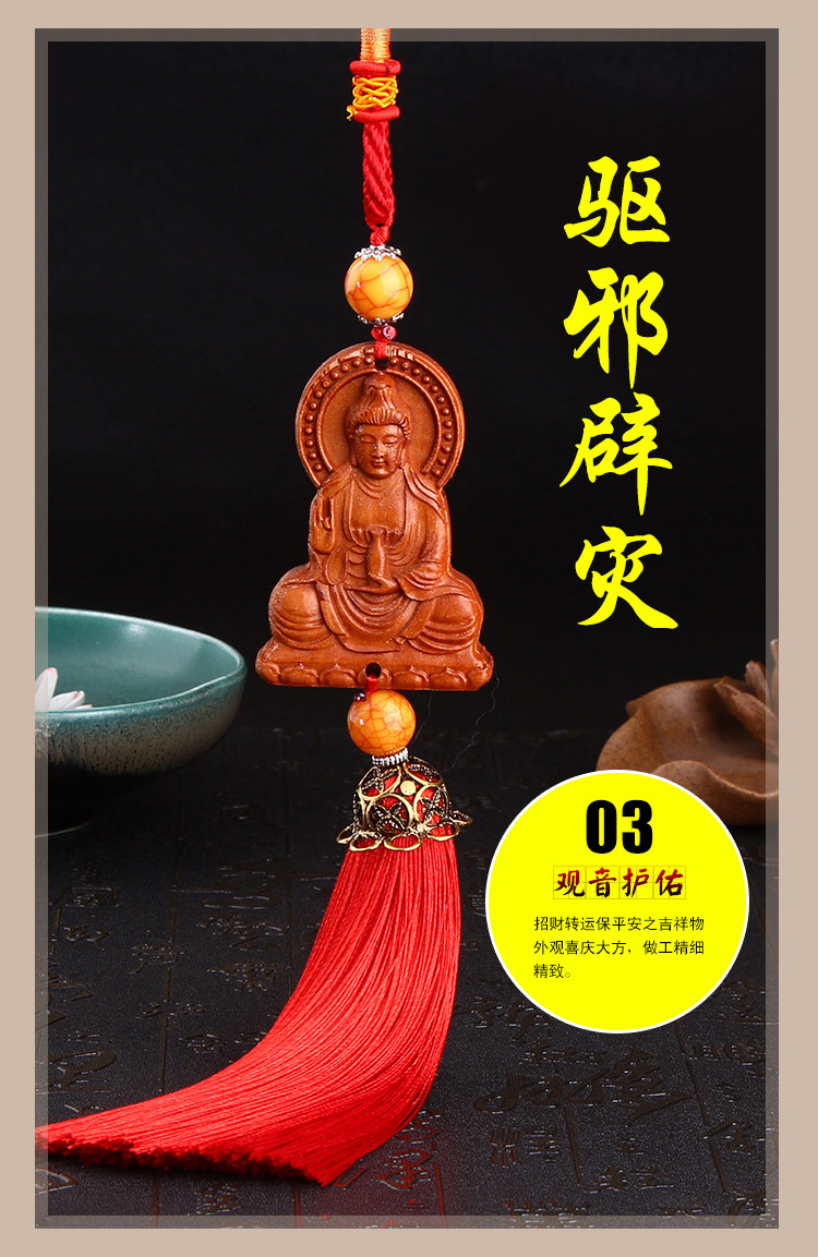 桃木汽车挂件出入平安开光辟邪招财貔貅汽车挂饰小车内后视镜吊坠