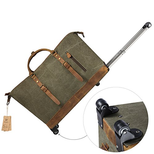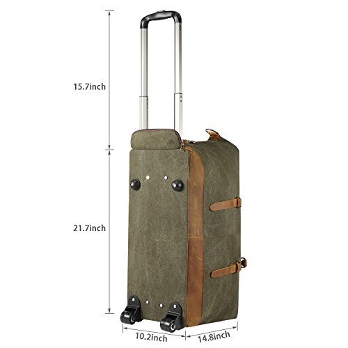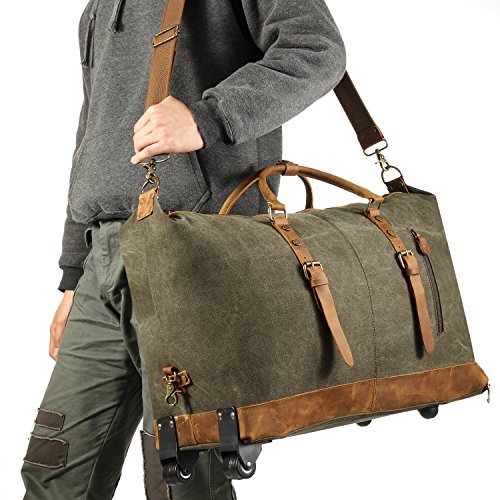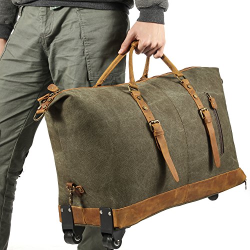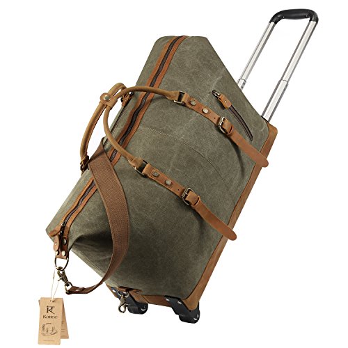 Kattee Luggage Rolling Duffel Bag Leather Trim Canvas Wheeled Travel Bag 50L