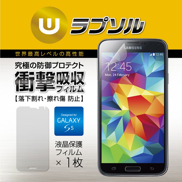 【 GALAXY S5(SC-05E)対応 衝撃吸収フィルム】<商品特徴>○ 液晶画面を落下、衝撃、擦り傷から守り、ミリタリーレベルの保護性と強度のある素材を使用。○ 液晶画面にタッチしても指紋が付着しません。○ 液晶画面が見やすい高透明度フィルムを使用。○ 自己吸着機能できれいに貼付けることが可能。○ 貼る際の専用液体が不要。ゴミや指紋がつかない貼付け用持ち手とスキージ付き。<付属品>○ ラップソルフィルム○ 特大マイクロファイバークロス○ 取り付けカード○ 取扱説明書※ GALAXY S5(SC-05E)本体は含まれておりません。GALAXY S5(SC-05E) フィルム/保護フィルム/液晶保護フィルム/保護シール/保護シート/画面保護フィルム/衝撃吸収■ フィルム携帯フィルム 強化フィルム フィルム 液晶保護フィルム 液晶保護 液晶保護フィルム 液晶保護フィルム 保護フィルム 保護 保護シート ブルーライトカット 強化 保護フィルム ブルーライト 覗き ブルー 覗き見防止 マット 旭硝子 9H 保護