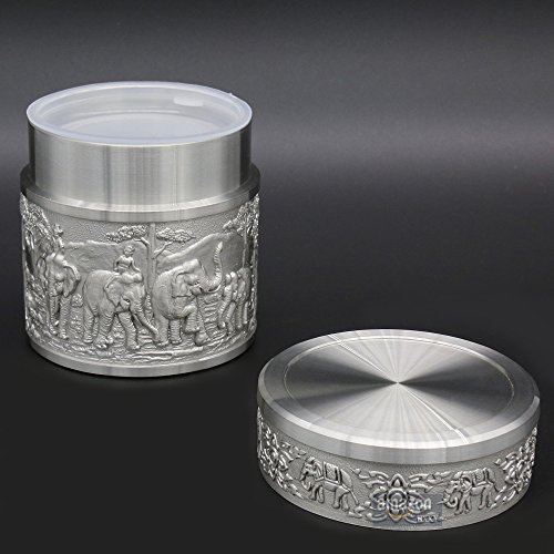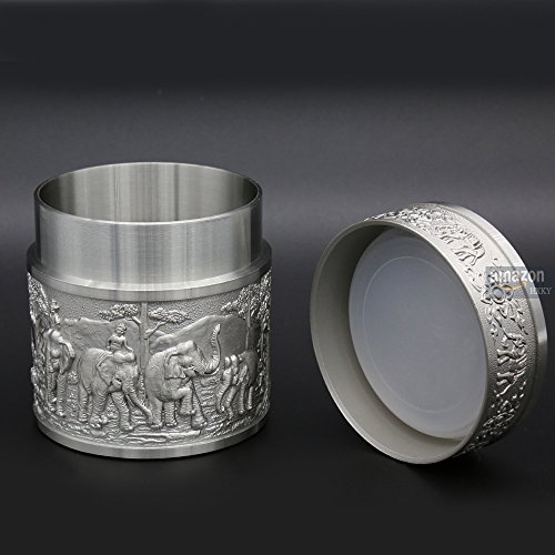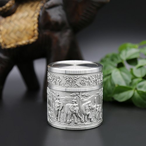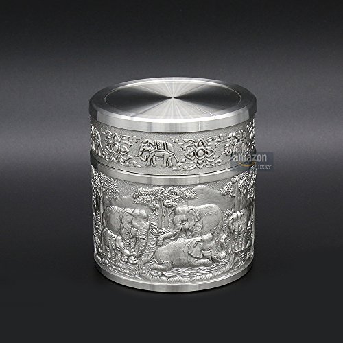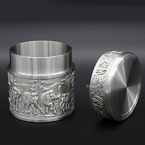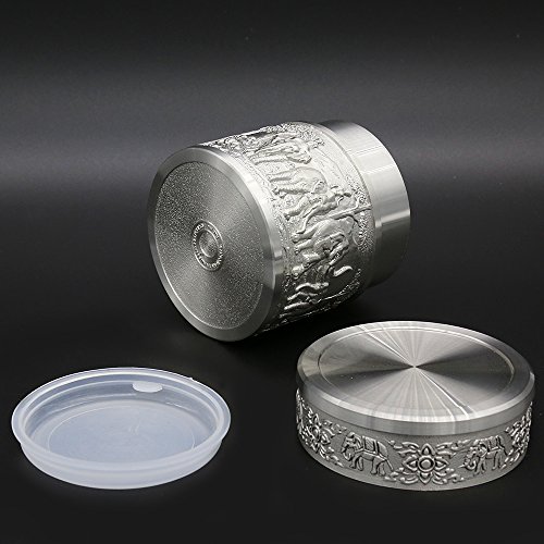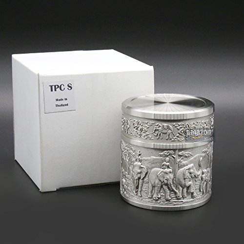 ★Product Size: Height:2.4 inch/6.0 cm Diameter:2.2 inch/5.5 cm Net Weight: 190g ★What is Pewter? Pewter is one of the most valuable precious metals in common since thousand years ago until today. Fine pewter is an alloy of tin. It can be highly polished or buffed to a satin finish. Pewter, like other precious metals, has set standards that specify that pewter muscontain at least 92 % pure tin. But products of Oriental Pewter (Thailand) exceed the standard of 92% pure tin. Our products contain 97% pure tin, Antimony and copper 3% (Lead free) which absolutely safe to use. ★Our Pewter: Our pewter is an alloy of tin, antimony and copper, tin being the main component at 97% Tin in its pure form, whilst being the fourth most precious metal in common use (after platinum, gold and silver ) today, is too soft for practical use. Copper and antimony are therefore added as hardening agents. Pewter is available in a variety of finishes all ideal for the production of giftware, being highly practical and durable whilst also being easily engraved. Tin is a plentiful natural resource and tin mining has little or no impact on the environment. Tin is bright and attractive and extremely versatile. ★How to Care? To care for your Oriental pewter's pewter ware, please take care your pewter by do not knock or jostle or scratch on pewter ware with anything which can cause damage. We recommend you wash the article in warm water with a light solution of dishwashing soap and dry with a soft cloth. Please do not use abrasives or caustic detergents to polish your pewter ware. < ★Notes: Do not put the Tin caddy in Oven, Microwave or dishwasher to avoid damage. Pull up tin lid when you open the tin caddy. Do not rotating tin lids in case the abrasion causes! 0