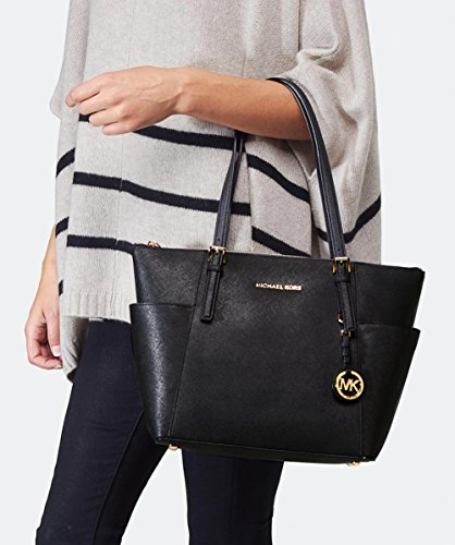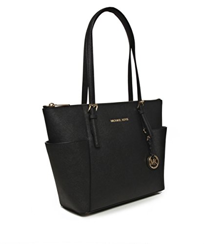 -. Brand : MICHAEL -. EAN : 5055619266533 -. Feature : MICHAEL bag in leather / Interior features zip pocket, 4 slip pockets and key fob / Double handles with 9-1/2" drop; top zip clsoure / Gold- or silver-tone hardware; 2 side slip pockets; signature plaque at front; detachable logo charm Interior features zip pocket, 4 slip pockets and key fob / 15-1/2" W x 10" H x 4-1/2" D -. ProductGroup : Shoes -. ProductTypeName : HANDBAG -. Title : Jet Set East West Top Zip Tote Black