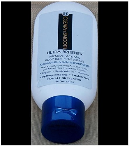 -. Binding : Misc. -. Brand : Clear N Smooth -. EAN : 0740939003153 -. Feature : BEST SKIN LIGHTENING: Clinically tested and proven; works on all skin types, light skin and dark skin, and skin blemishes; outperforming competing formulations; simply apply daily to your face, hands and any body area / HYDROQUINONE FREE & PARABEN FREE: Same fast skin brightening effectiveness; no harsh bleaching; synergistic combination of 4 natural skin brighteners to even out skin tone / WHITENING TREATMENTS: Whitening treatment lotion brightens, refreshes and lightens face, hands and body for dark spots, age spots, melasma, hyperpigmentation, freckles, dark patches, discoloration, sunburn, and overall even skin tone / ACNE TREATMENT: Salicylic Acid, the active ingredient for Acne Treatment; clears existing acne, prevents new acne from developing, fades out acne spots, and defends against acne / SOFT ANTI AGING: Deep penetrating, moisturizing anti aging with retinol and hyaluronic acid to smooth out wrinkles, giving a soft, fresh, smooth and even overall complexion -. Label : Clear-N-Smooth -. Manufacturer : Clear-N-Smooth -. ProductGroup : Beauty -. ProductTypeName : BEAUTY -. Publisher : Clear-N-Smooth -. Studio : Clear-N-Smooth -. Title : Intensive Skin Whitening: Natural Lightening Extracts for Face Hands Knees Elbows & Body. With Retinol Vitamin A + Hyaluronic Acid + Sunscreen. Anti Acne Formula. Effective Skin Bleaching Alternative -. UPC : 740939003153