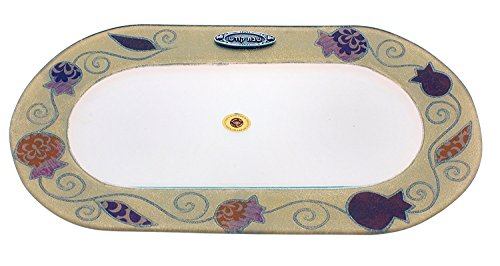 - Features Red and Orange vibrant colored pomegranates around the glass Challah tray