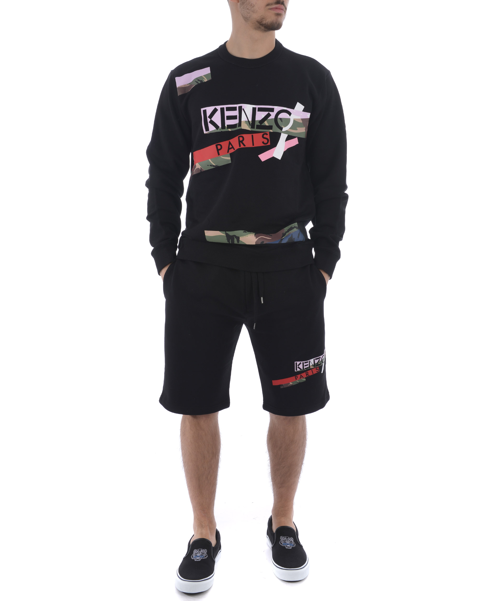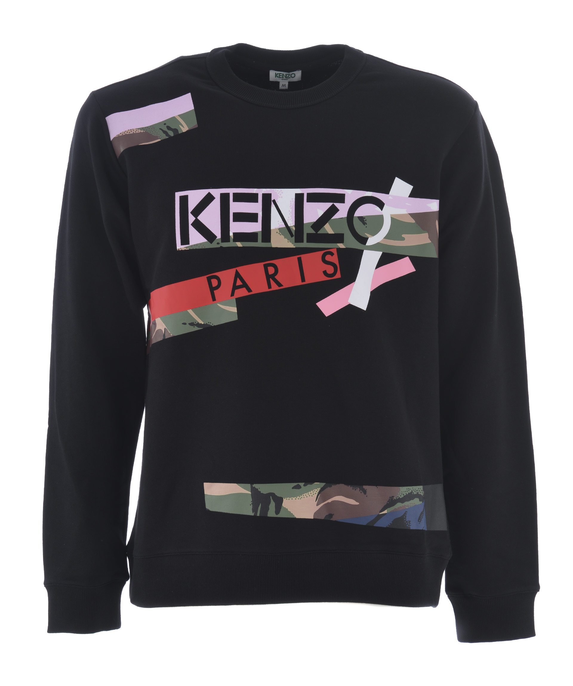 Felpa Kenzo in cotone Nero. Stampa frontale. Girocollo a costine. Manica lunga. Polsi e fondo a costine. Misura in foto M 100% cotone