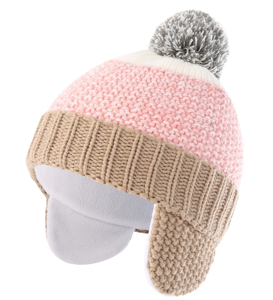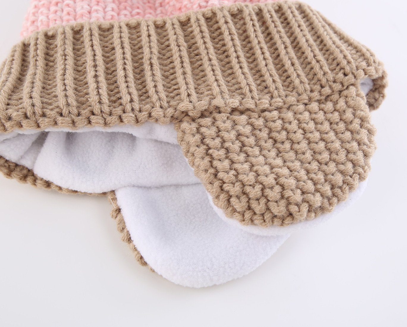 Connectyle New arrival kids' winter earpit knit hat is made of acrylic and polyester fleece, giving it a soft feel.