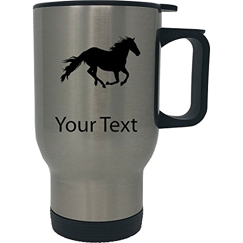 -. Title : Custom Personalized Horse 14-Ounce Silver Stainless Steel Travel Coffee Mug with Handle