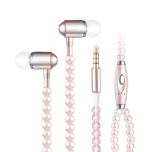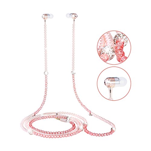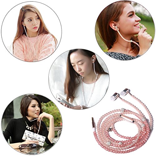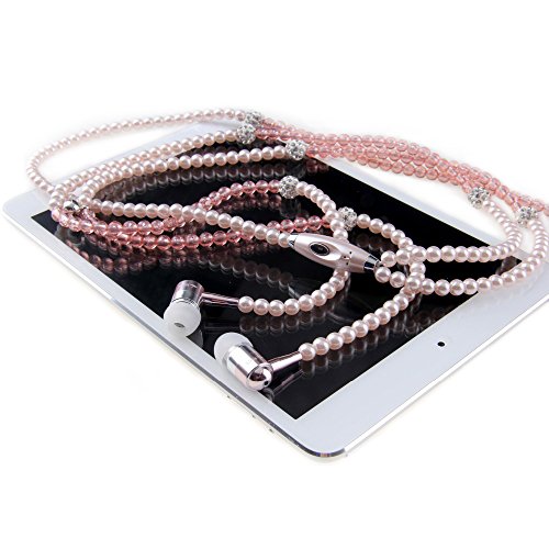 -. Title : Fashionable Jewelry pearl Necklace Stereo Earphones with Microphone Beads 3.5mm In-ear Headphone Connect to Ipod, Iphone, Droid, Blackberry, Mp3 Player and All 3.5mm Audio Devices - Pink