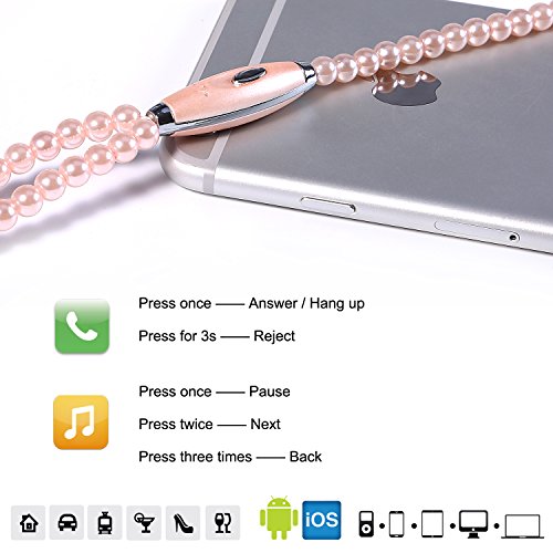 -. Feature : Not only a stereo earphone, It's a beautiful necklace,bracelet,jewelry.Great gift for girl friend,mam,sister,women,lady,female. / Uniquely Designed Necklace Closes Up With Magnetic Clasps In Front And In The Back Of Neck / The only fuction button can answer,hung up or reject a phone call,and play,pause,switch the music. / Built In Microphone For Phone Conversations, Upgraded Stereo Impedance For Crystal Sound / 3.5mm audio pin works with iPhone, iPad, iPod or other phones & MP3 players