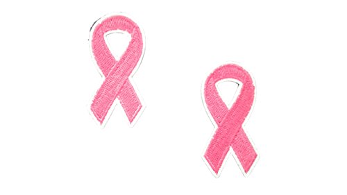 2 pieces PINK RIBBON Iron On Patch Applique Awareness Breast Cancer Support Ribbon Motif Symbol Decal 2 x 1 inches (5 x 2.5 cm)