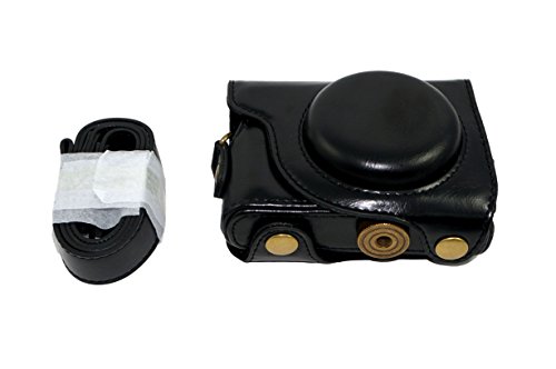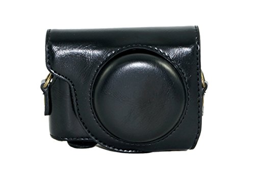 Protective PU Leather Camera Case Bag For Canon PowerShot G9X, G9 X Mark II Mark 2 with Shoulder Neck Strap Belt Black