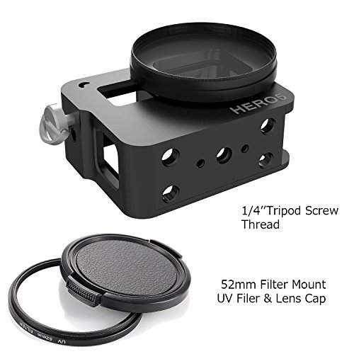 Luxebell C400 Aluminium Alloy Skeleton Thick Solid Protective Case Shell with 52mm Uv Filter for Gopro Hero 5 Camera - Wide Angle Mode Have No Vignetting