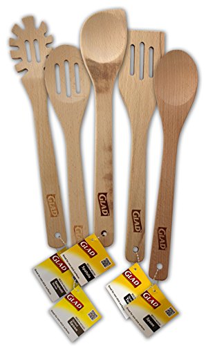 (Glad Dry Food Storage)/Kitchen Dining/Cook's Tools Gadgets/DIRECT FROM USA/Glad Wooden Cooking Utensil Set, Five Utensils, Beechwood